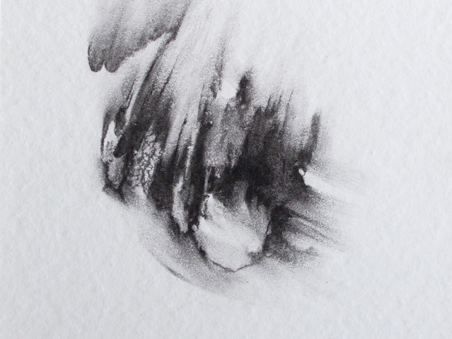 Here, everything is drifting: mechanisms explode, events are paused, drawing is a way of talking to the charcoal about human hours and anxieties, showing it the clouds, the trees, and the earth.